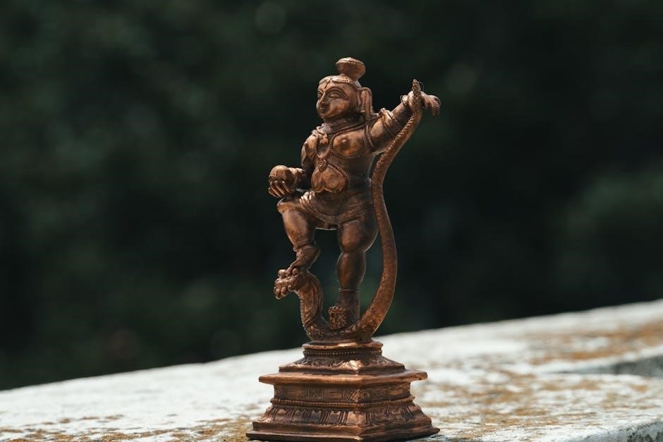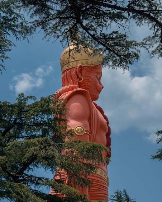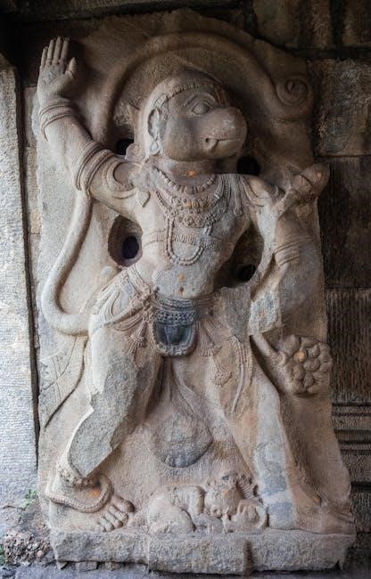 The Sankat Mochan Hanuman Ashtak is deeply rooted in the Ramayana, celebrating Hanuman’s unwavering devotion to Lord Rama and his selfless service. It reflects episodes from Hindu mythology, highlighting Hanuman’s bravery and divine interventions. The hymn connects devotees to the timeless spiritual legacy of the Ramayana, reinforcing themes of loyalty, faith, and divine grace, making it a cherished part of Hindu devotional traditions.